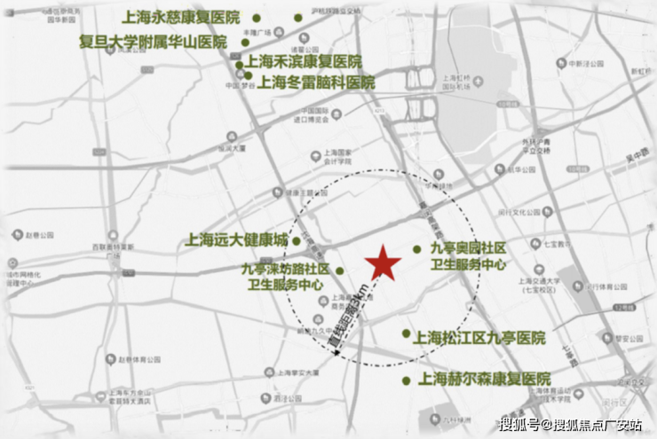 项目周边聚集多家三甲医院和高端康复及专科医院:如复旦大学附属华山医院虹桥院区、上海冬雷脑科医院等。