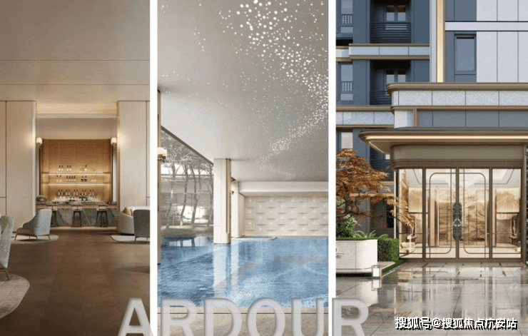 从步入社区大门开始,约70米超大尺度门庭、奢华酒店般的港湾式落客,就将仪式感便顶格拉满;星级酒店大堂,内部多处装置融合非遗技艺美学,生活在尊贵与艺术之间巧妙平衡;进入下沉式中庭花园,归家路上移步异景;单元入户入口延续奢华酒店质感,采用奢石与铝板叠加的奢华设计,碰撞法式圆润线条,仿佛艺术殿堂。