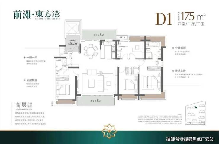 如果有进阶改善置业需求的客户,可以选择建面约140/175㎡4房2厅3卫!