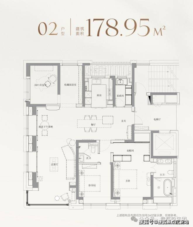 以建面约179㎡的边套为例,并未将北房间局限为常规卧室,而是灵活打造为HIFI音乐室与收藏阅读室,既可作为业主的灵感工作室,也能成为孩子的兴趣天地;