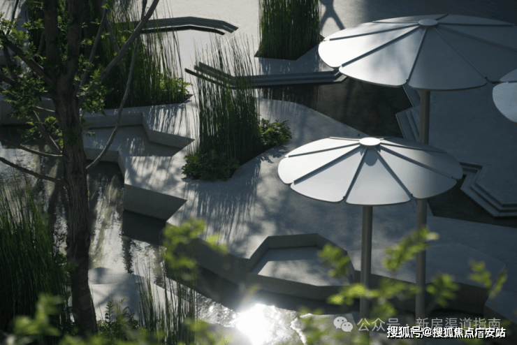 步入社区,首入眼帘的是约6米高水幕的下沉式山水庭院,与周围建筑融为一体,将自然与松弛感带给社区。