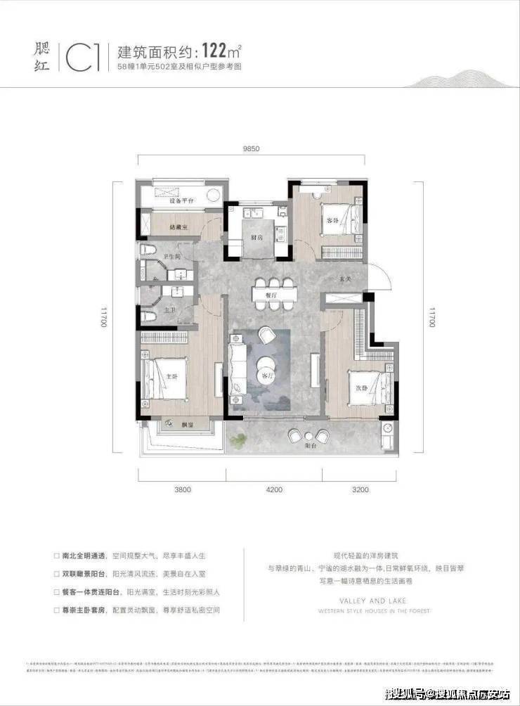 优势:122㎡的三房两厅两卫设计,留出了独立的玄关收纳空间与落尘区,十分贴心。三个房间分布在三个方向,空间都不显局促,主卧更是自成一体。客厅连阳台,一动一静之间景观尽收眼底。