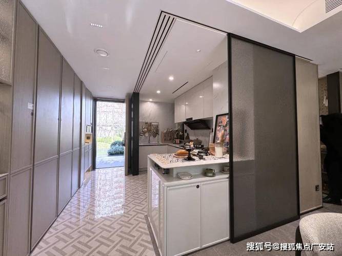 比如,厨房配了珍珠白吊柜、三组抽屉式拉篮合理搭配,调料架收纳、大容量踢脚抽、清洁用品收纳区,米面粮油、碗碟刀叉都可完美隐身。