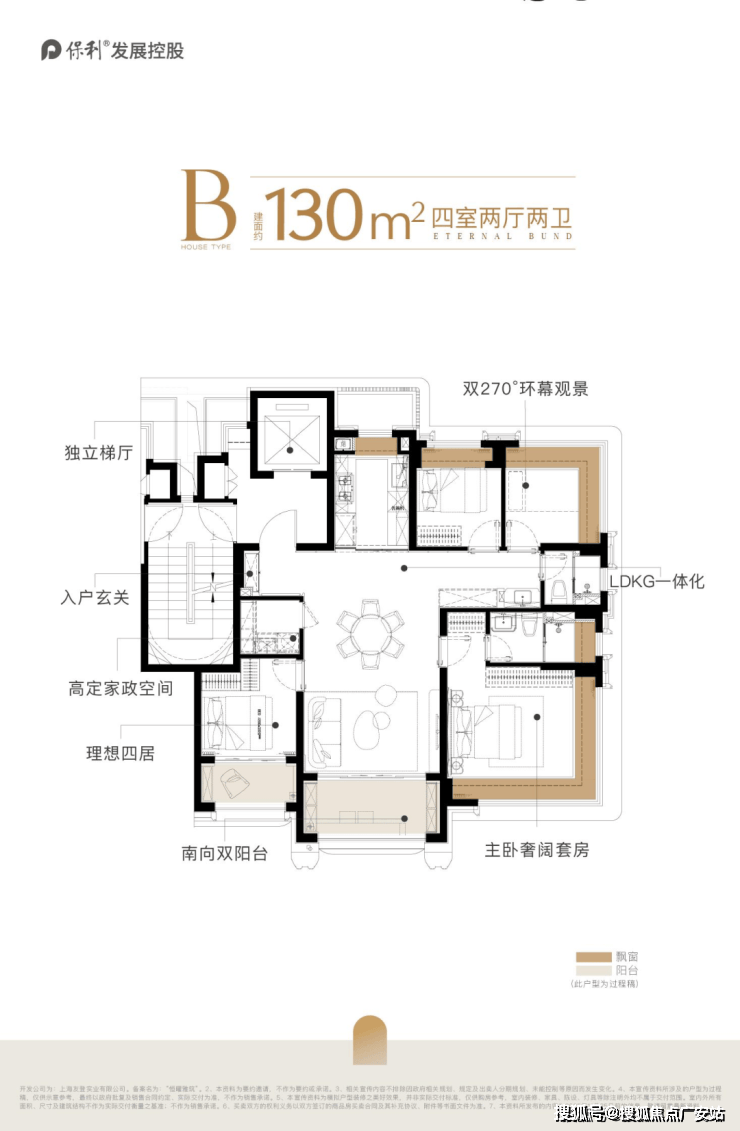 保利外滩曜建面约130㎡的实际使用率做到了约94%,双阳台+双约270°视野+一梯一户独立电梯厅+多飘窗。