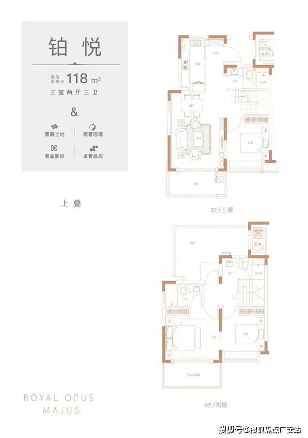 上叠:118(3室2厅3卫),150(4室2厅3卫),200(4室2厅4卫)