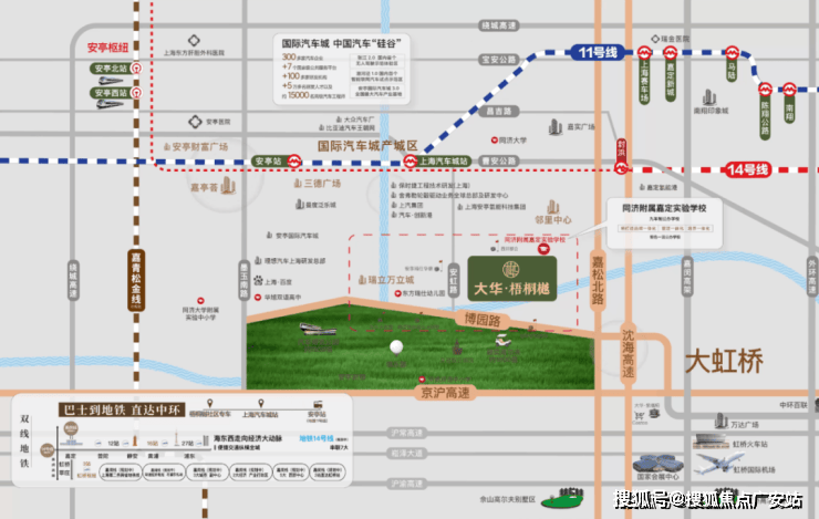 交通方面,项目坐拥地铁11号线、14号线(规划)、嘉闵线(在建)多重轨交环绕;嘉闵高架、嘉松北路、墨玉路、曹安公路、京沪高速、博园路三纵三横路网,轻松连接市区核心,瞬息深入虹桥生活圈;在距虹桥同等空间距离下,享更近时间距离。项目为了客户的便捷出行,更是配置了社区巴士,地铁站与项目免费接驳,让家与世界更便捷的联通。