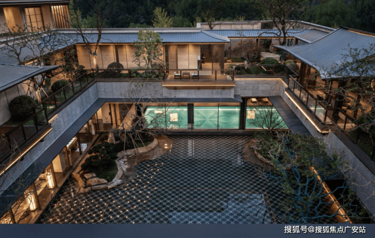 主入口歇山顶震撼大门,搭配立体饱满的景墙、重约600斤铜狮,进而转到下沉式庭院里,婉转诗意的东方语境让人沉浸其中。