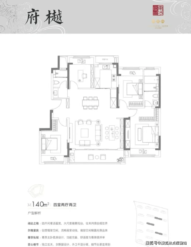140㎡四房两卫:"四叶草"布局,主卧套房+IMAX观景阳台