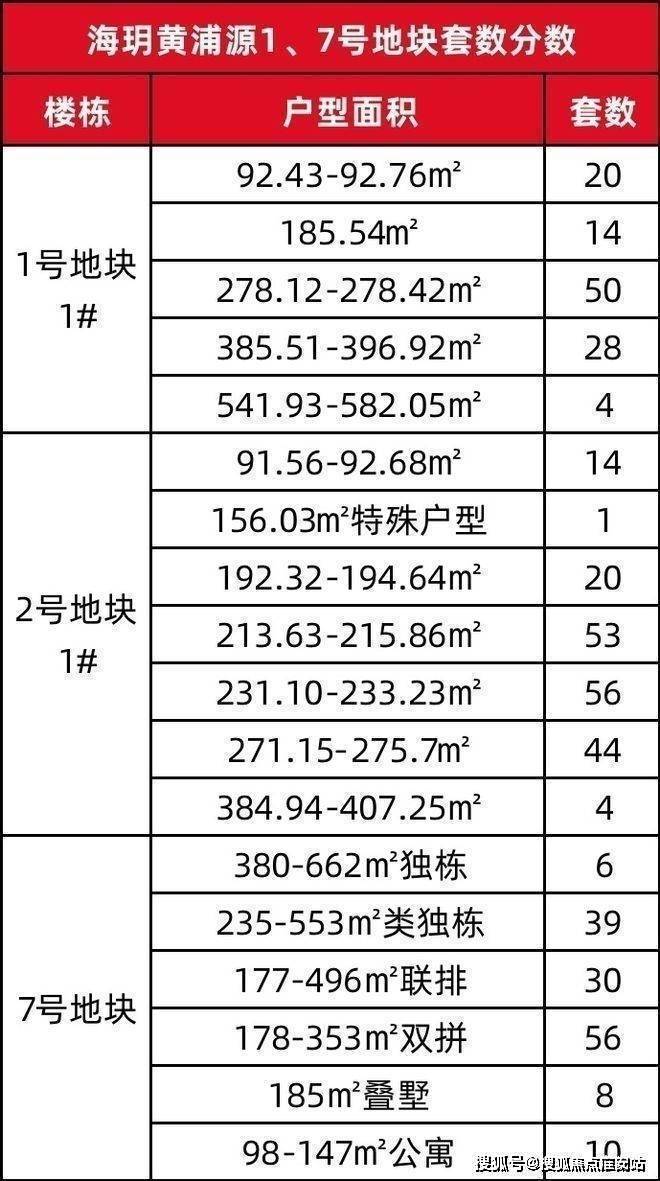 上海建工黄浦新项目「海玥黄浦源」1号地块超高层住宅、7号地块风貌别墅,大致的户型套数分布如下海玥黄浦源售楼处电话:400-8118-224