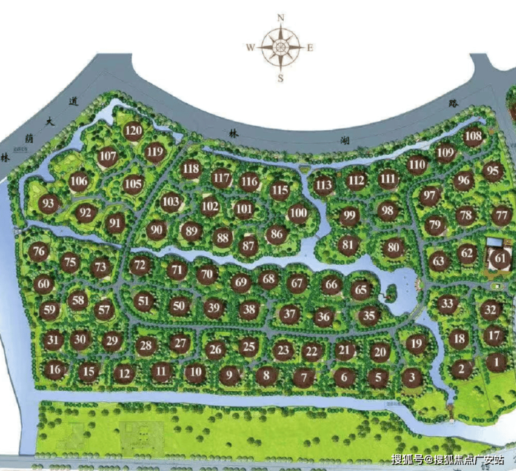 整个小区总占地225亩,户均占地2.5亩,每户花园面积在1500~1800㎡,以林业路为界分两期开发,共190栋。