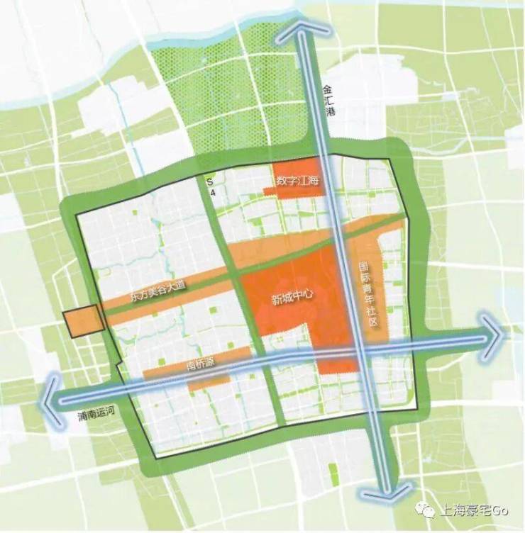 五纵:闵浦二桥沪金高速、金海公路(虹梅南路隧道)、林海公路、浦星公路。五横:航南公路、大叶公路、东方美谷大道、南奉公路、上海绕城公路。