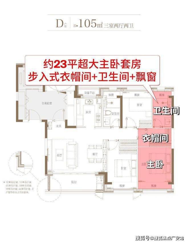 ④约23平超大主卧套房,步入式衣帽间+卫生间+飘窗