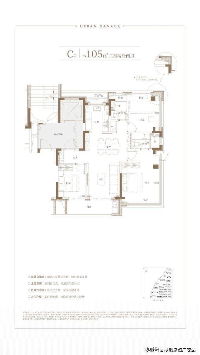 另外,项目还有建面约105㎡3房2卫明星户型,设计更为亮眼。