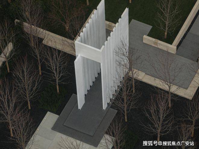 穿过公园进入社区前场,仪式感铺面,类高奢酒店设计,约10米高的「精神之门」矗立。