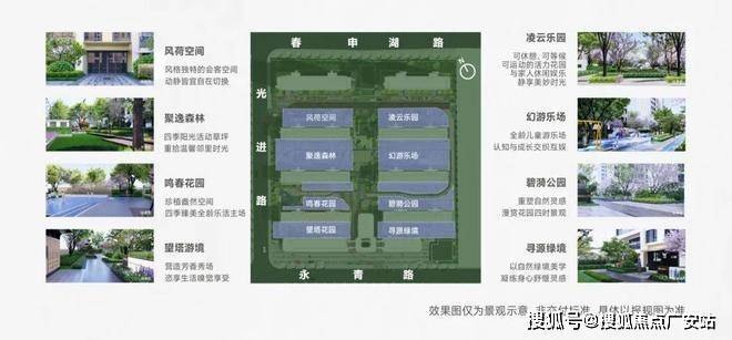 以一条生态互动景观环线,中央景观动线--揽胜轴、全感森氧轴线--曲韵轴,串联八大宅间花园,为居者提供兼顾景观与健康的活力环氧跑道,移步换景与风光共鸣。