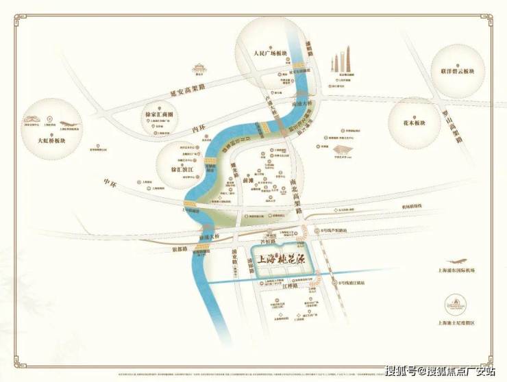 「上海桃花源」位于黄浦江以东的闵行区浦锦街道,是前滩板块旁的首席配套居住区。在济阳路高架开通后,开车快速可达前滩,还可以车行方便速达人民广场、南京西路、百年外滩、陆家嘴国金中心、淮海路IFC、新天地商圈、联洋碧云国际社区、徐家汇恒隆广场,可以说是融合浦西浦东真正精华的地段!