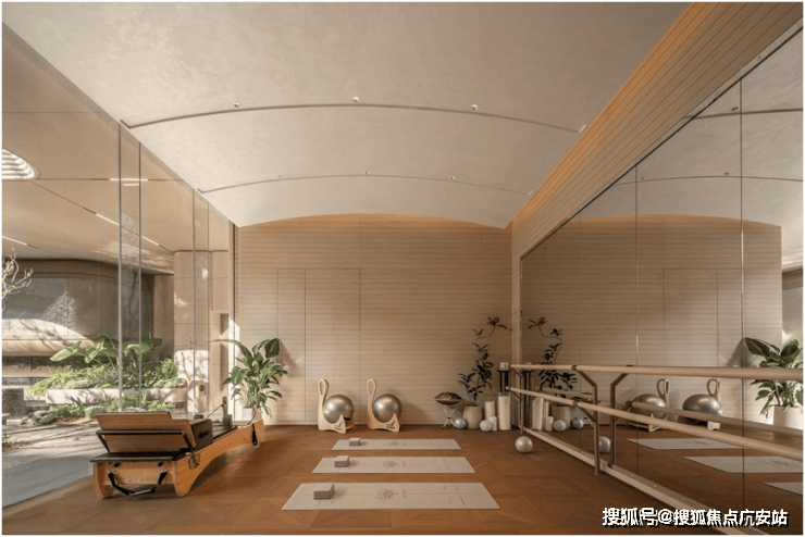 自然贯穿了整个社区公区的设计语言,整体约1200㎡立体会所+约1700㎡主题架空层,配备了私宴厅、瑜伽室、棋牌室等休闲空间。