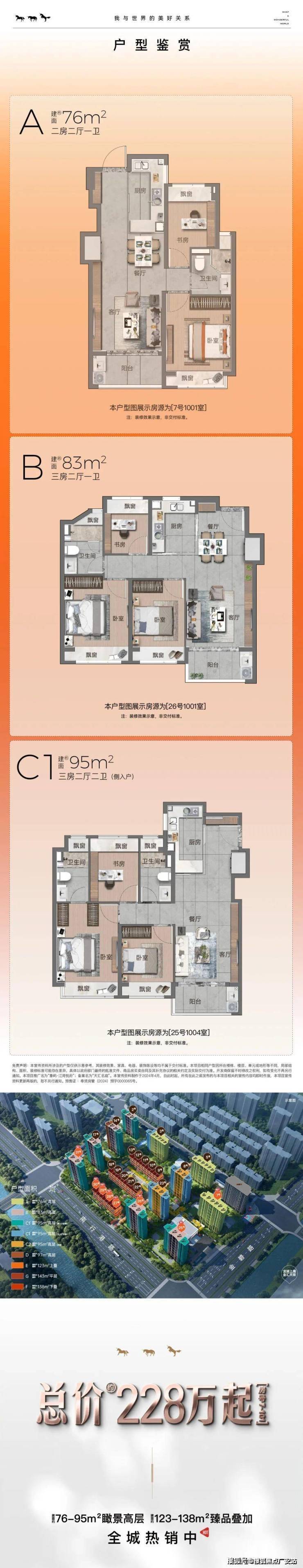 项目推出11栋14-18F高层住宅、3栋6F叠拼别墅,产品或包含约73-93㎡2-3房、约123-138㎡叠加、约143㎡平层。