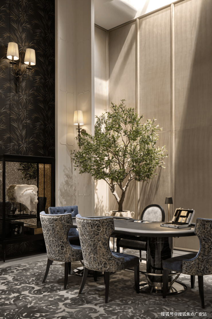 具体的家具方面,设计师利用丝绸、大漆和陶瓷等本土文化元素,从细节铸就空间高级感。