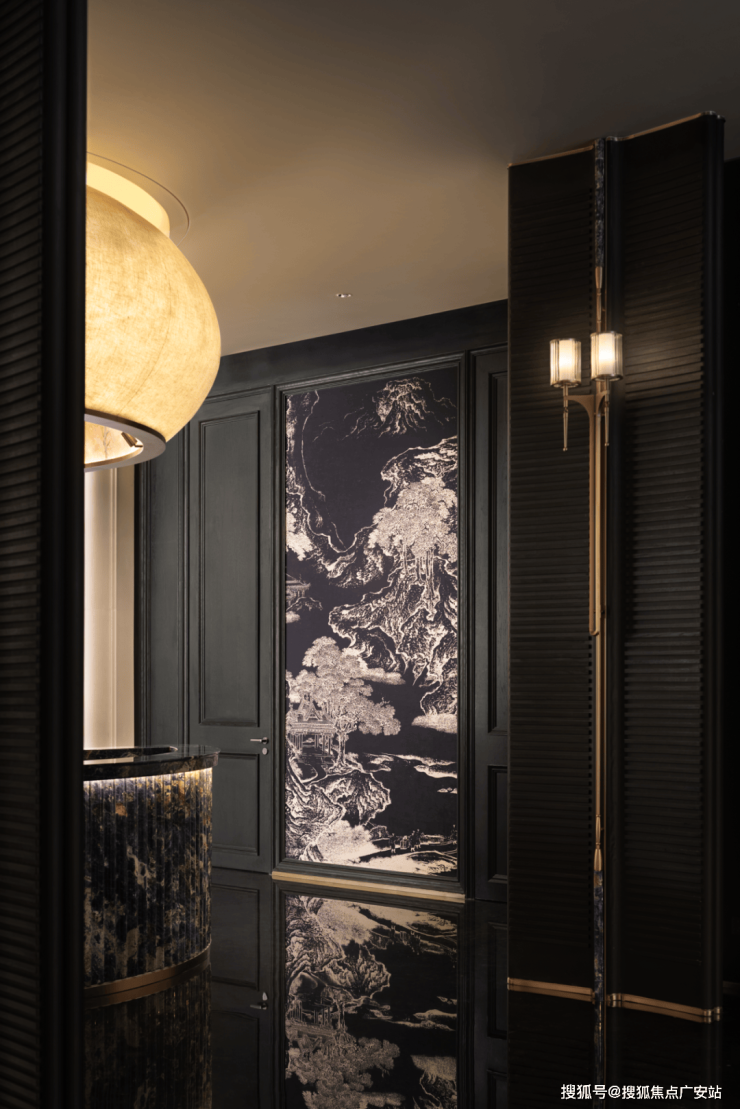法式的雕花赋予白色墙面层次美感,中式的黑色描绘着山水大作,也融入海派风格。这不是简单的黑白碰撞,而是艺术的交流。