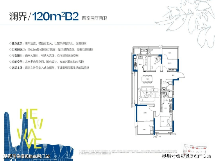 约171㎡大四房:三卫双套房,南向面宽约15.5米,主卧带L型转角飘窗,总价约700万实现终极改善。