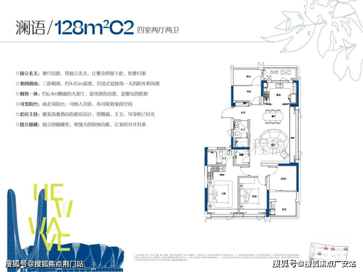 约128㎡四房:所有房间最小面宽约3米,告别“书房充卧室”,舒适度远超以往同面积产品。