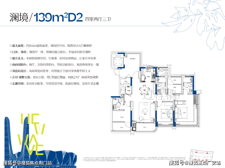 约139㎡D2户型实现四开间朝南、IMAX级巨幕视野。以往要达到同等采光面,需180㎡以上户型才能实现。