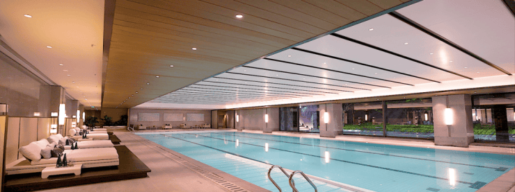 无论你在泳池游泳、跑步机上奔跑,又或者会客洽谈,抬眼就能欣赏到下沉式庭院的四季美景。