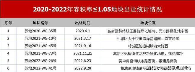 近三年,2020-2022年,苏州一共拍出了217宗地块,其中,容积率1.05以下低密