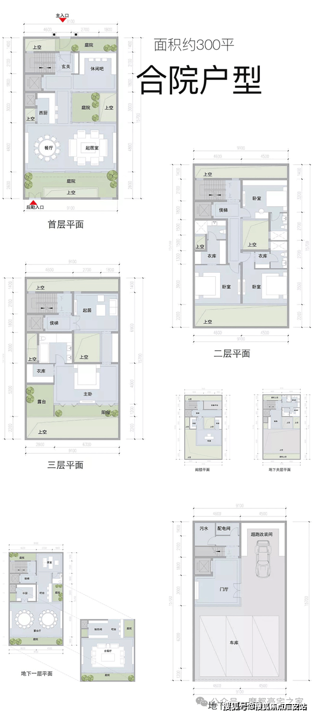 呼应刻在国人骨子里的庭院情节,户型设计中创造性的加入多重、立体花园概念(多重开放空间如庭院/露台/阳台/采光井等),庭院层层为退、与露台相呼应,在平面和空间上创造出多层次亲近自然的可能。