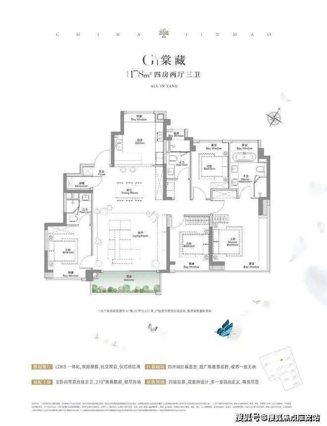 上海宝山金茂棠前营销中心热线400-8118-224(官方预约热线)建面约117㎡3房2厅2卫,做到了3+1开间朝南5个飘窗+主卧套房设计+270°转角飘窗,所有的尺度都有进一步提升。