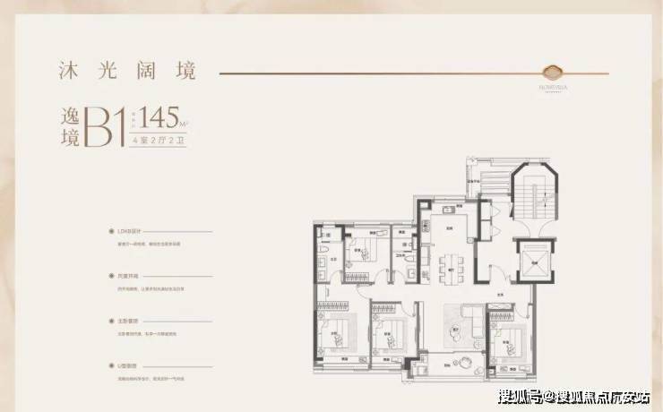 户型特点:4开间朝南,LDK一体化设计,南北通透。客厅面宽达4.3米,外接4.8米长阳台,采光通风俱佳。主卧带270°转角飘窗,主卫也有飘窗赠送。全屋飘窗设计,独立电梯厅,私密性与尊享感强。