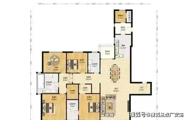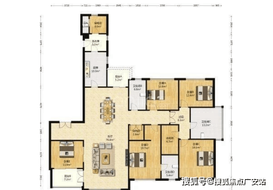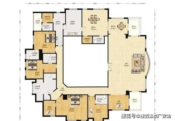 5房3厅6卫,客厅三面采光