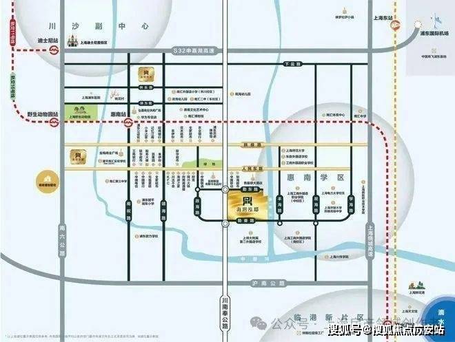 惠南城芯 16号线旁咫尺繁华:项目位于惠南镇核心区域,距16号线惠南站直线距离约1.5Km,周边1公里内生活配套醇熟,商业、医疗、生态资源优越,全龄化的优质教育配套环伺。
