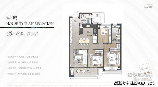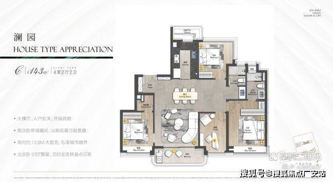 【产品类型】8-18层建面约105㎡3房2厅2卫户型,143㎡四房2厅2卫