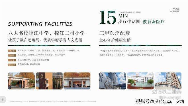 项目约2公里内涵盖了杨浦两所三甲医院和一所三乙医院。分别是擅长儿科的新华医院(上海十大名院,上海首家综合医院样板)、擅长妇产科的复旦大学附属妇产医院以及拥有国家级临床科室的杨浦区中心医院。以及项目北边一公里范围内的二级甲等综合性医院:控江医院。一站式高端医疗,全方位护航你家人的健康。