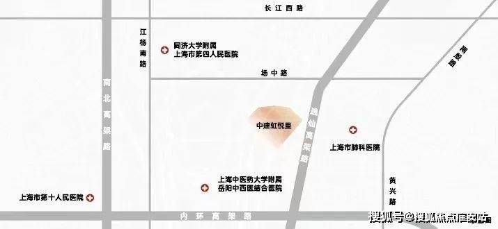中建·虹悦里位于虹口江湾镇,区位相对不错,虽然地处中外环间,但是距离中环线不到1km,南侧中环高架,东侧逸仙路高架,也可以直上内环。