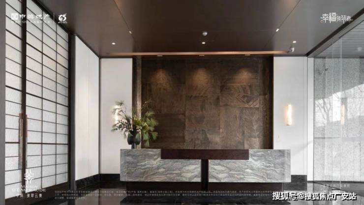 如果你来参观,首先映入眼帘的是约37米延展面的府院式大门,大面的prada绿奢石处理,主墙面浅灰色石材搭配深灰色金属条勾勒,各类石材组合,上方悬挂约4米高星空雨棚,光与影的跃动之下,尊贵的归家体验。