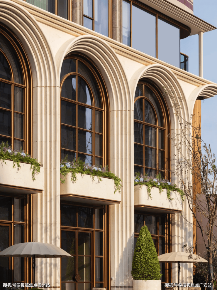 建筑设计由九米设计操刀,以“意式美学与斯卡帕叠级手法”为核,将古典秩序与现代建筑语言融合。约11.5米高石材基座,融入西方古典拱券元素,通过叠级手法增强空间层次感,奠定庄重基调。