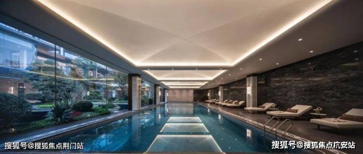 天澜传序府这次在园区里,拉出了一条层次感超强的园林中轴线,它的起点就是叠墅区门口滨江标志性的「蓝宝石」戏水池。