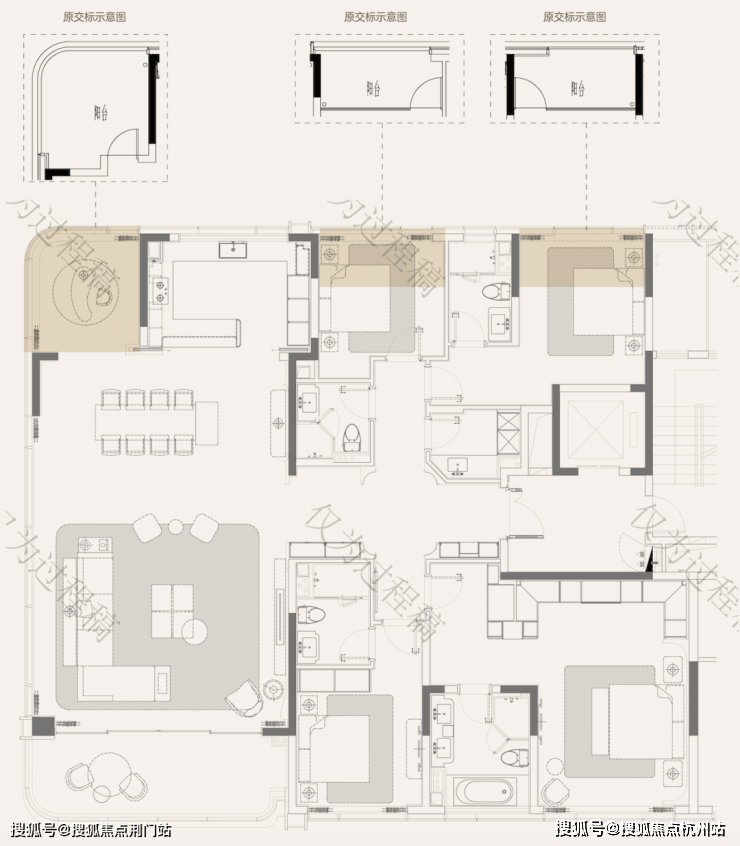天澜传序府建筑面积约265方的户型,更是直接就做出了大平层,才有的尺度感——