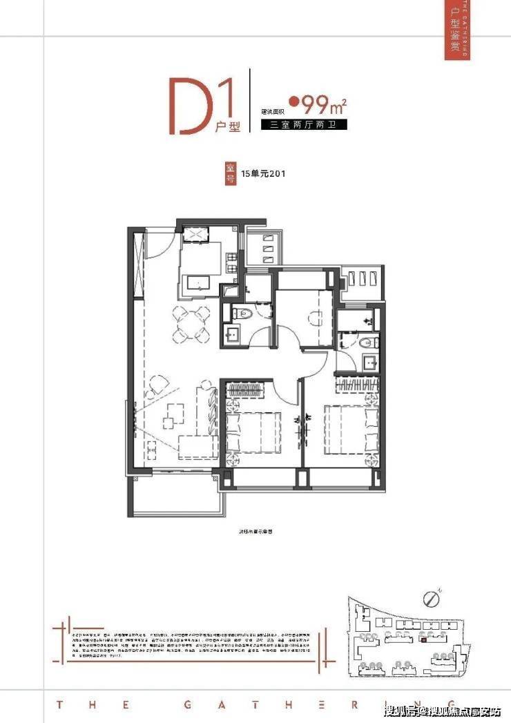 层高:3 米|两梯两户、南北通透,得房率 75%-78%