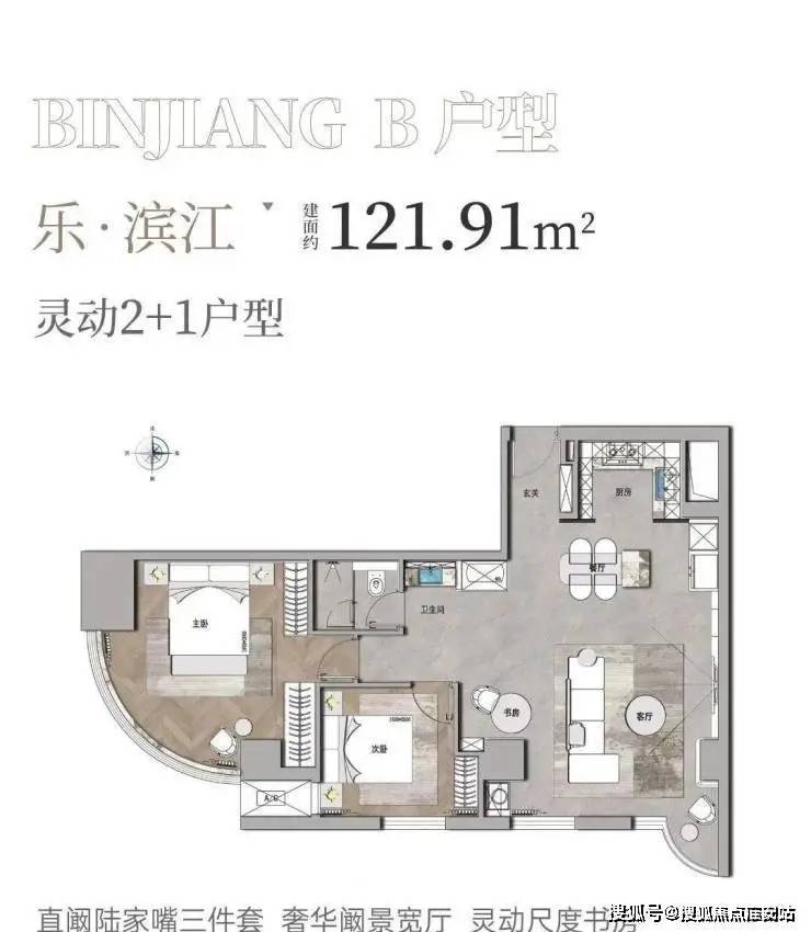 121㎡两房两厅两卫:舒适两居,主卧套房设计,270°江景视野