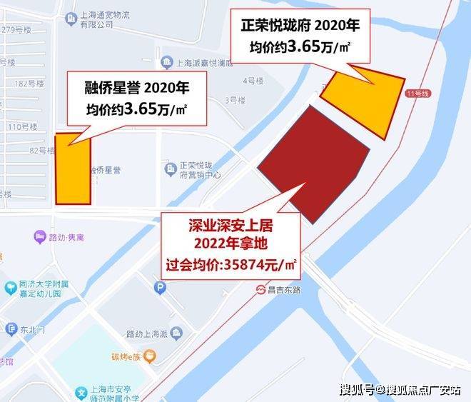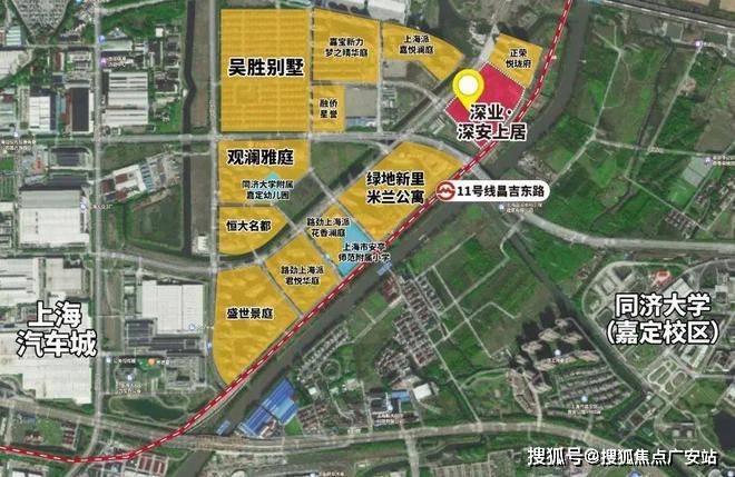 地铁11号线昌吉东路站直线仅约200米,2站可达嘉定新城,9站虹桥火车站,且同区域仅约1公里的深业安亭项目联动价已达4.2万/㎡。