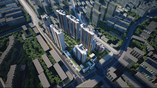 从效果图上看到,建筑的外立面是现代简约的时尚立面,都会高端住宅风格尽显。