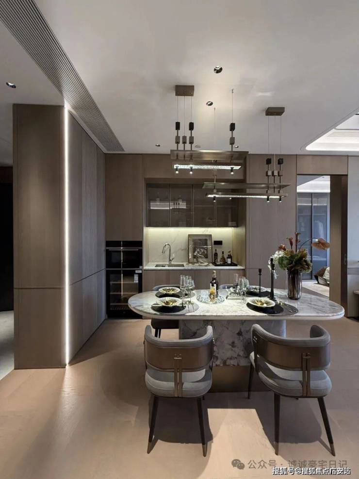 私密场域依旧保持静谧,黑白色基础上搭配了更多的色彩,例如深棕、浅紫等,艺术品的衬托深邃迷人,热络了家的氛围。