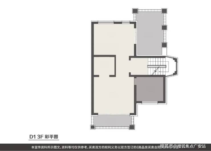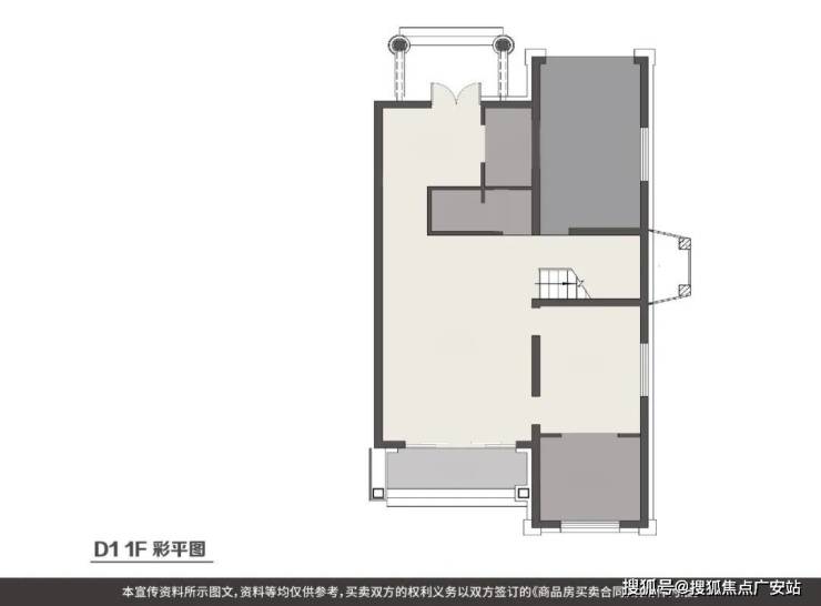 D1型双拼建筑面积:277.08-302.75平米(除6号279.46平米、7号277.08平米、8号281.7平米外,其余皆附带车库);