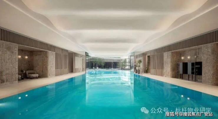 杭州住宅项目里首个270°视野的恒温景观泳池。这个泳池位于园区C位,以45°探入庭院,并以弧形落地玻璃窗隔断,向着光的方向,游着游着,就仿佛游到了花园中。