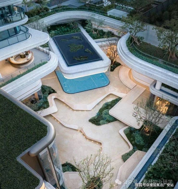 社区设计:整体抬升 3 米,打造悬浮空中花园;5 米高架空层,全域风雨连廊;下沉庭院 +2800㎡序 lounge 会所(恒温泳池、私宴厅、SPA、健身房)