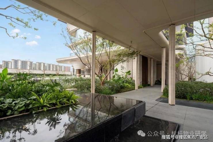 因项目整体抬高,从下沉庭院到架空层“空中花园”的落差极大,形成独特的峡谷地貌,杭序府的设计团队汲取九溪烟树为造园灵感,打造一个立体多维的城市溪谷交互园林;因项目毗邻江岸,杭序府的外立面以“站立的江潮”为灵感,大面积弧形玻璃与四层堆叠的石材线条,将钱塘江潮的千钧之力和流水之韵凝练于建筑肌理之中。